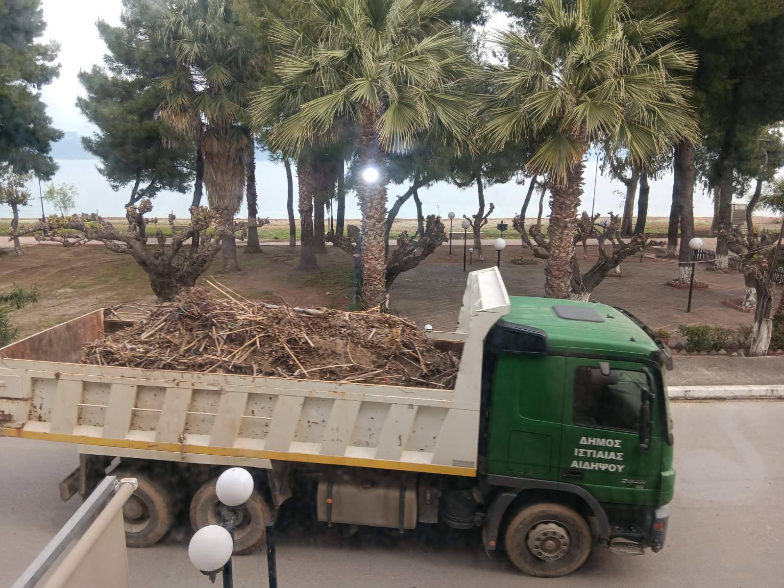 Ευχαριστούμε το Δήμος Ιστιαίας-Αιδηψού που άμεσα έστειλε φορτηγά για την απομάκρυνση των φερτών υλικών από την παραλία.